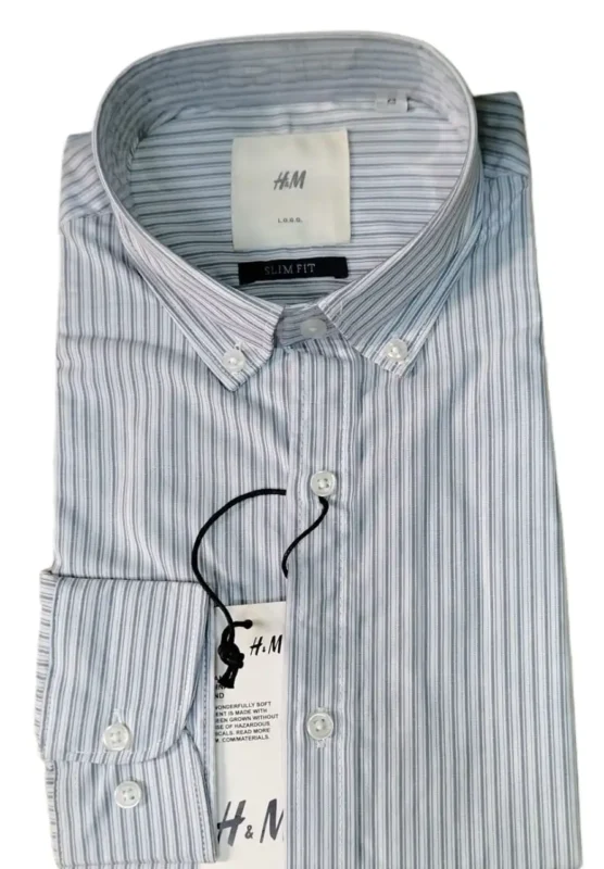 Original Export H&M Full Sleeve Remi Cotton Shirt – Light Blue with White Vertical Stripe